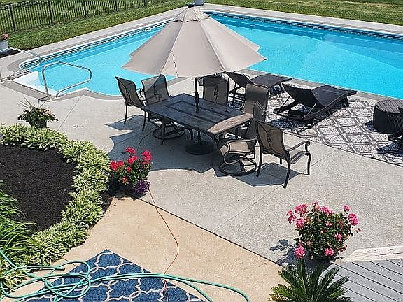 1.5 Acre.Private and spacious living. One of a kind floor plan with huge master suite on the first floor. Updated kitchen with cathedral ceilings skylights granite and stainless loads of cabinets. 2nd floor with 3 bedrooms huge bonus room jack n jill bath and full bath in 3rd bedroom. Finished lower level walk out with rec room 2nd kitchen and 2nd office. In ground pool with fenced yard deck and patio. Truly one of kind floor plan! Country living 5 min from shopping1