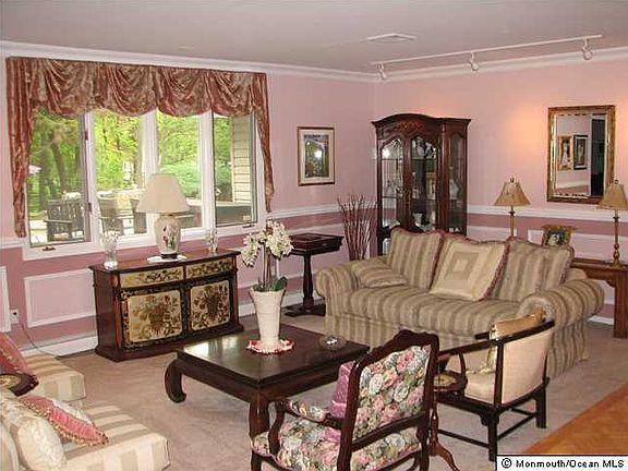 Desirable reservoir section of Lincroft is home to this sprawling custom built home with spectacular rear yard complete w/ 50 pool,spa, gazebo,large deck.Sunken living rm, large open sun rm w/ bkfst area. Four family bedrooms incl master on first floor PLUS large master getaway on 2nd flr complete w/ fireplace, rear balcony, jacuzzi rm, office and luxurious master bath. Basement is enormous with large finished area perfect for entertaining or playroom. Dont miss this! Be in by the holidays!