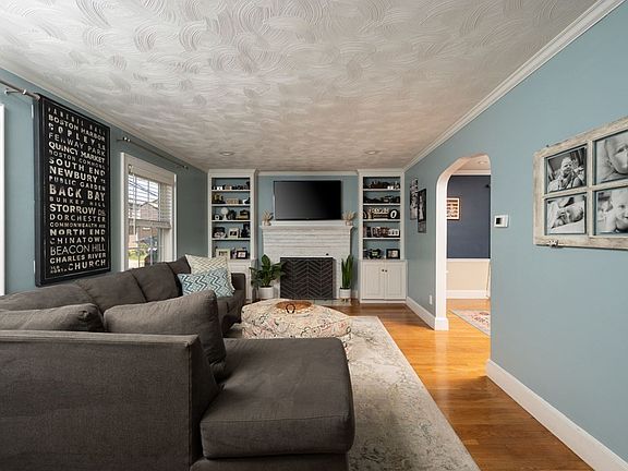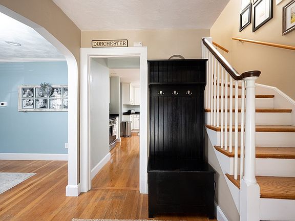 This Dorchester gem is tucked away in a quiet neighborhood. Walking distance to Ashmont T, many local hot spots in lower mills, and Dorchester. Walking through the door you are greeted by a large living room with a fireplace and custom built-ins that flow right into the oversized dining room, offering tons of charm with crown molding and built-in china cabinet. Hardwood floors throughout. Down the hallway you will notice a pantry and convenient half bath. The open concept kitchen and second living room is sure to capture your heart with cathedral ceilings and sunny vibe. The kitchen boasts all new stainless steel appliances, custom butcher block breakfast bar with seating for 2 and work space. Composite deck will lead you down a few steps to a maintenance free, turf yard. This yard delivers it all from stone patio, wifi outdoor sound system, a large shed and 100% fenced in. Upstairs you will find 3 large bedrooms all updated with recessed lighting and ceiling fans. This home has it all