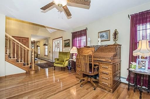 Pride of ownership. This 13 Room, 6 Bedroom, 5 bath cape style home with a two car garage attached and first floor in-law suite. Exterior being painted this month. First floor master. In-law has a bedroom, living room, kitchen, bathroom. First floor laundry. Hardwood floors thought the first floor. The family room has cathedral ceiling and a fireplace. Finished walkout basement with a wet bar, game room, exercise and playroom. Two zone Central Air and a 6 Zone Oil Heating system. Central Vac. and security system.. Large Shed in back yard. Easy to show this one of a kind home. Please see the attached blue links in MLS to view the Floor plan/Virtual tour/Matterport/Drone.