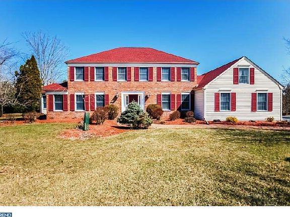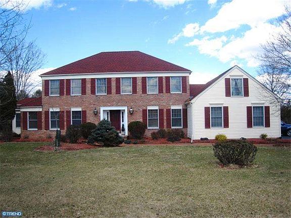 Desirable Riversedge community, Classic and Spacious Grosso Built 4 BR, 2 1/2 Bath Brick Front Colonial set on 1 acre with heated inground pool. Backs to horse farm for relaxing and serene views. 1st floor Den/5th BR has a private deck overlooking the Koi pond. Sliders from the eat in kitchen with granite counters, tile backsplash and center island lead to a large deck that overlooks the inviting heated pool. Family and Dining rooms have built-ins. A floor to ceiling brick fireplace, cathedral ceiling and skylights accent the family room. The charming and sunny Living room and Den have cozy window seats. The partially finished basement was recently updated and there is still an abundance of storage/work space. Just minutes from Princeton, shopping, restaurants and DR Canal for hiking, biking, canoeing and fishing. Desirable Montgomery township school district!