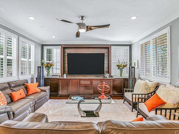 GORGEOUS Home With All the UPGRADES!! Located in the Prestigious Golf Course community of Glenwood. This home shows like a model home with over $100k in upgrades. Bright open floor plan that show cases beautiful crown molding throughout, plantation shutters, all lighting is LED, custom built-in media center, built in surround sound with Sonas speakers, Smart home with I pads throughout. Gourmet Kitchen has large center island with Brazilian granite counter tops, stainless steel appliances, and walk in pantry. Formal dining room with cozy fireplace next to kitchen that opens up to family room. Entertain your guests and Enjoy Outdoor Living in your beautifully landscaped backyard with designed stone fire and glass fireplace, built in Lynx BBQ , outdoor surround sound and LED lighting by remote, plants are on drip sprinklers with Skydrip. New Lennox A/C. Upstairs you can unwind in your Huge Master Suite. Remodeled Luxury master bathroom with dual sinks, custom shower, grand bathtub, and walk in closet with built-in organizers. Balcony off of Master has beautiful views. Two other generous sized bedrooms are located upstairs with an added bonus room for office space or den option. HOA amenities include 3 parks, pools, large play area and greenbelts, unlimited access to Aquatic Center, and social membership to Aliso Viejo Country Club. Award Winning Schools, Fine Dinning, Shopping and Theaters are close by as well. This elegant, inviting home is turnkey and ready to move right in!