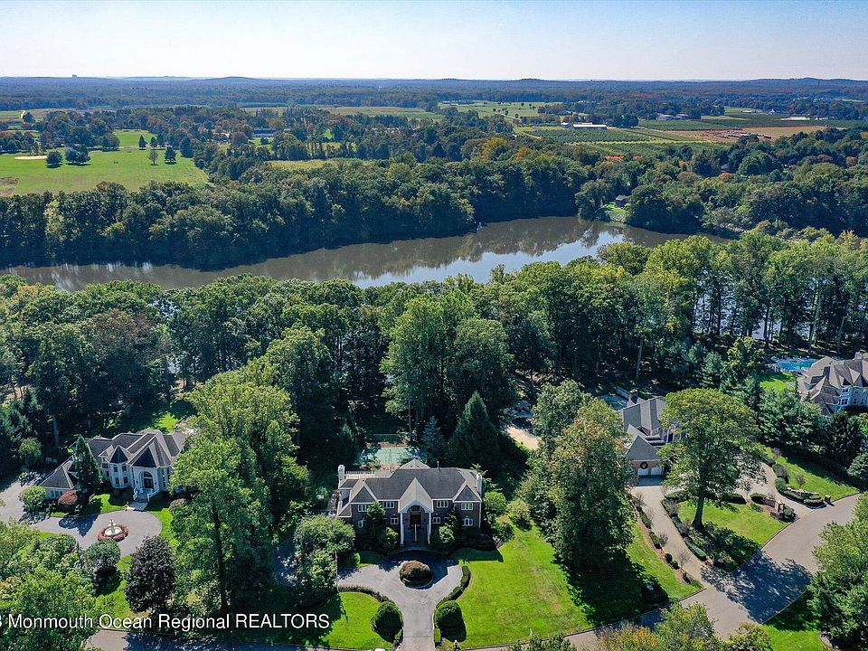 Welcome to an extraordinary waterfront estate situated on prestigious Rivers Edge Drive, overlooking the pristine waters of the Swimming River Reservoir. This exceptional property showcases 6 bedrooms and 5 and a half bathrooms, offering appx 7,000 sq ft luxurious living space including basement. Gourmet kitchen with open floor plan and newer Subzero appliances. Maplewood cabinets and granite countertops. 10ft Ceilings on the 1st floor with a Princess Suite. Reservoir views from the expansive windows throughout the residence. Indulge in the opulent amenities, including a sports court/pickleball. Can easily replace with a pool if desired. Expansive Master Bedroom with Dressing Rm & 5 closets, w/marble Master Bath w/ tub & shower. Easy commute to NYC & close to shopping & NJ Shore. Welcome to Rivers Edge Drive, a breathtaking haven nestled on the majestic shores of the Swimming River Reservoir in Colts Neck. This 1.26-acre lot presents a truly unparalleled lifestyle opportunity, with the property being the only available waterfront developed lot on the Swimming River Reservoir in Colts Neck.