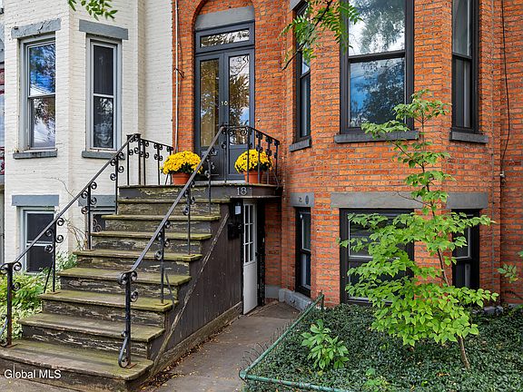 Welcome to this beautiful red brick townhouse situated on a picturesque lot with Hudson River frontage and incredible views. Spanning three spacious floors, this 2+ bed 2.5 bath property offers major potential and versatility! Keep as a single family residence or easily convert to a multi-family property. Plumbing is already in place to facilitate the addition of a second level kitchen. Heating, plumbing, and electrical have all been updated! Enjoy the ornate architectural details, high ceilings, pocket doors, and decorative fireplaces. Many newer windows and doors. Large garage at rear of property, great for off-street parking or storage. Driveway accessed from Nelson Ave. Newer backyard deck just off garden level kitchen. Close proximity to Troy, Albany, and all major routes of travel!
