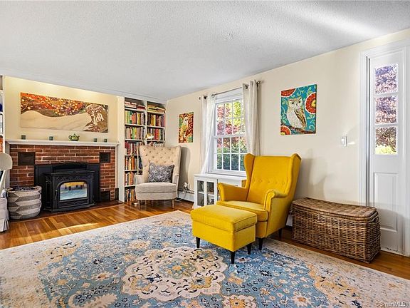 Charming expanded cape on a half acre, modernized for today's lifestyle. This 3-bedroom, 1 and one half bath beauty is filled with natural light. The spacious chefs kitchen is the true centerpiece of this home. Newly renovated - it boasts stainless steel appliances, quartz countertops, custom butcher block island, antibacterial quartz double sink with commercial-style faucet, subway tile backsplash, vent hood and stylish ceiling fan. Updated mudroom with LVP flooring also serves as first floor laundry and home office, among other possibilities. Main level also features formal dining room with built in china closet, formal living room with cozy pellet stove flanked by built-in bookcases. Den with access to new composite deck and full bath also on first floor. Upstairs, youll find three bedrooms with abundant closet space, including a walk-in, along with a half-bath. Original oak floors throughout the living areas. Outside there are perennials front and back, covered porch, new glass slider leading large deck that overlooks a sizable fully fenced-in backyard with a weeping cherry tree and garden areas. Concrete patio behind the one-car attached garage is another perfect outdoor spot. This home is an affordable delight!