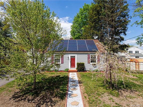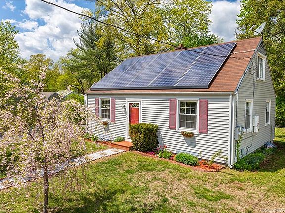 Adorable Cape featuring granite kitchen open to dining area with sliders leading to paver patio over looking large flat fenced in yard. 1st floor master, guest bedroom and full bathroom. Gleaming hardwood flooring in living room & bedrooms. Additional guest bedroom and cedar closet on the upper level. Central air, 1 car attached garage, partially finished room & laundry in lower level, new oil tank, solar by Solar City installed April 2016 transferable to buyer at closing.