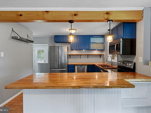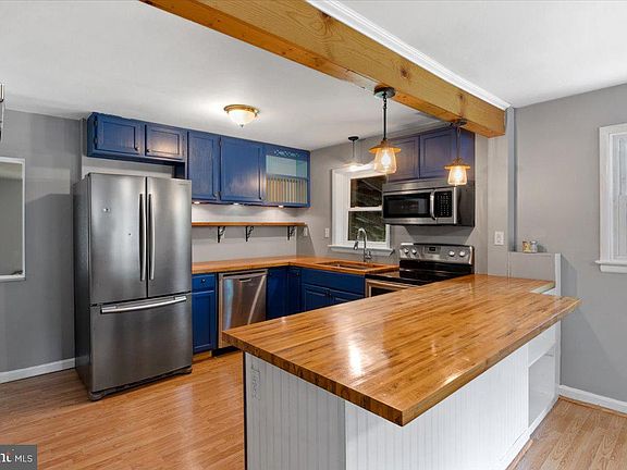 This home in Robshire Manor has lots of unexpected extras! One of the few homes in the neighborhood that has a full basement, you will have so much finished living space! A new roof was just completed and new siding & gutters make it look fresh and clean. You will love the hardwood floors on the main level and the updated bath with ceramic tile tub surround. The kitchen features gorgeous butcher block counter tops and a huge island with seating space for 4. Newer stainless appliances are an upgrade, too. You will have 3 bedrooms upstairs and a sunroom off the kitchen overlooking the back yard. The lower level is finished with a big recreation room, a den/bedroom for guests, a huge laundry room and tons of storage space. One of the nicest features of the home is the big (almost half acre!) back yard backing up to dense trees. There is a patio off the kitchen and a swing set for the kids. Being Sold AS IS , but everything is in good working order. Please note that the ceiling in the sunroom will be repaired from the storm damage prior to settlement. The new roofing is already in place.