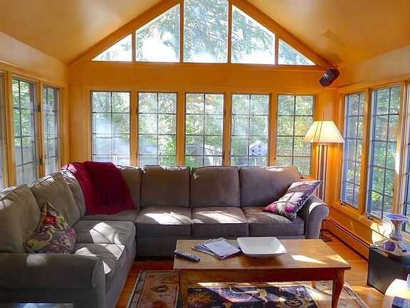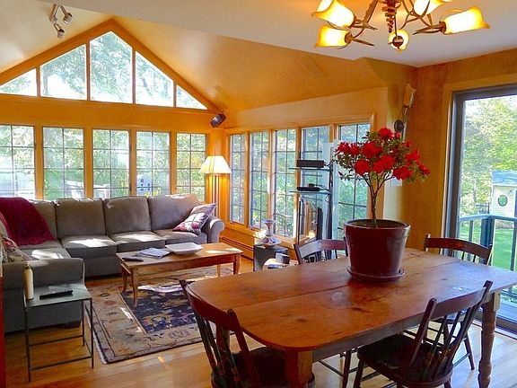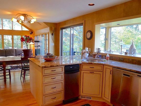 Artsy touches abound in this oasis of a home that is down a long driveway, far from the madding crowd, yet right in the heart of Newton. Sparkling swimming pool in large, secluded & artfully landscaped yard. This former owners residence features 3+ BRs and 3 full baths with central A/C and can be delivered with some or all furnishings upon request. Renovated granite/SS kitchen opens to vaulted ceiling family room w banks of windows looking out to a fairy tale private setting, including a private sanctuary & deck for contemplation or composing. Property abuts Edmund Woods. Utterly unique in every way you have to see it to be convinced.