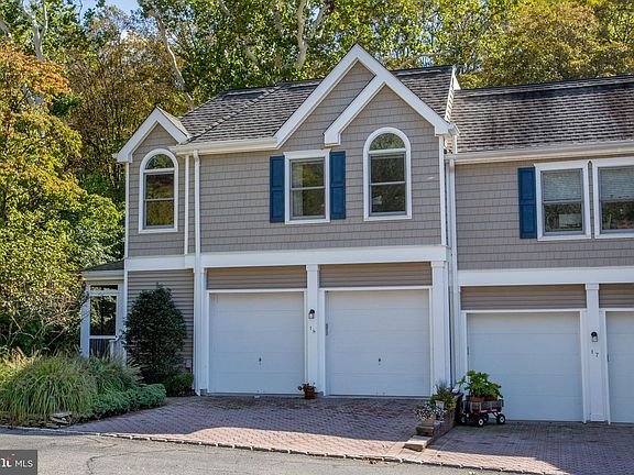 Set in the coveted Rock Creek Woods community, just minutes to Lambertville and New Hope, this bright and inviting end-unit offers maintenance-free living surrounded by nature. A crisp brick walkway lined with mature perennials leads to a delightful screened-in porch with ceiling fans that overlooks peaceful green views. Inside you will discover abundant windows, hardwood floors, and an open and airy main level that makes entertaining easy. A cozy living room with fireplace is open to the dining area, and a wall of glass doors ushers you out to the expansive back deck that overlooks Rock Creek and the woods beyond. This gorgeous setting is the perfect backdrop to start your morning or unwind at the end of the day while listening to the babbling creek. The eat-in chef’s kitchen is ready for the holidays with granite counters, large center is-land, stainless steel appliances, including built-in gas oven and warming drawer. A wall of lovely built-in cabinets offers a breakfast bar and ample storage. A sweet powder room and direct access to the two-car attached garage adds ease to daily life. The open staircase leads up to a bright wraparound landing with a large bow window with a built-in seat. The primary suite is a private retreat with a vaulted ceiling and walls of windows that overlook the creek, so you can fall asleep to the babbling creek. The huge ensuite bathroom has a soaking tub, double vanity, and two walk-in closets. Across the hall, there are two more charming bedrooms, a full hall bath-room, and second floor laundry. Spend your weekends enjoying the natural beauty of the area, hiking along the D&R Canal Towpath, or exploring the restaurants, shops, and entertainment on both sides of the river.