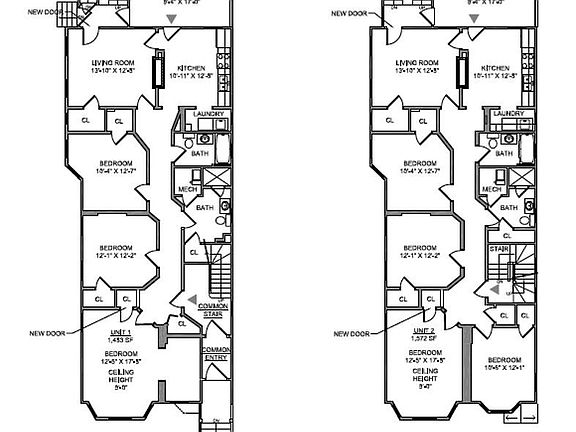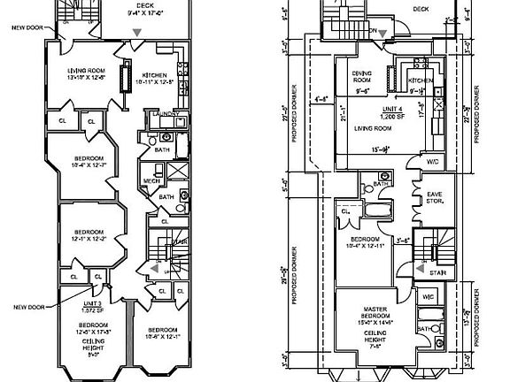 Previously existing 3 Family with approved plans to legalize the 4th floor apartment, dormer the roof and install sprinkler system. Existing units on floors 1-3 are in good condition and each have existing two bathrooms. Final unit breakdown: Unit1, 5RM, 3BD, 2BH, 1483 sqft: Unit 2, 6RM, 4BD, 2BH, 1572 sqft: Unit 3, 6RM, 4BD, 2BH, 1572 sqft: Unit 4, 5RM, 2BD, 2BH, 1,200 sqft. Currently all units are vacant.