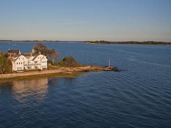 Private Bell Island direct waterfront property offers beauty & serenity w/attention to detail from a bygone era. Breathtaking panoramic water views from every room set the stage for the wonders to be discovered at this extroardinary home. The newly installed seawall runs along the waterfront and a 4' thick waterproof stone foundation was used to create the subterranean wine cellar. Architectural features reflecting understated elegance include coffered 10' ceilings, antique oak floors throughout, walls of windows, 4 fpls, custom moldings & lead covered copper gutters. Master bedroom w/French doors to a private deck & separate sitting room w/fireplace and incredible water views. Experience dramatic sunsets over the skyline of Manhattan!