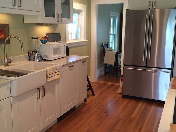 2 bedroom, 2 bath Classic Cape Cod style home. Newly renovated light and bright gourmet kitchen and dining room with ceasarstone countertops and large center island. Original quarter sawn hardwood oak floors throughout. Beautifully landscaped property with surrounding perennial gardens and private backyard with patio. Oversized closets and built in storage cabinet features in both bedrooms. Beautiful working fireplace in living room. Bright, additional sunroom can be used as a home office, arts and crafts room, library, or smaller guest bedroom.
