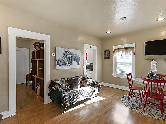 This charming 2 bed 1 bath 1917 home has a covered front porch, deck, a shared garage and a metal garage with alley access. With many upgrades that includes a newer roof, on demand water heater, tile floor in kitchen, exterior paint and double pane windows. Central heat and air with a large basement that would make a great recreational room/office. Section 1 Pest clearance, bonus bathroom in basement with walk in shower. Conventional financing or Cash only!