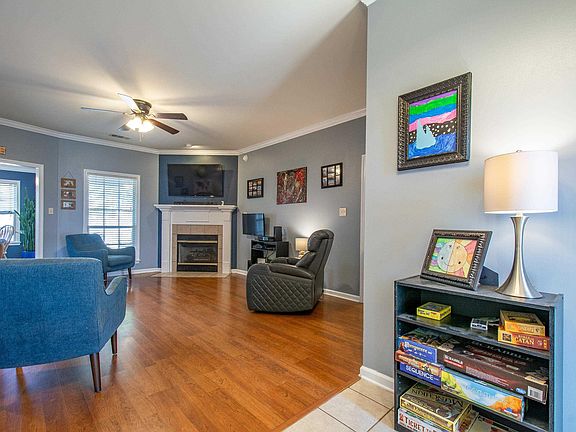 WELCOME HOME! Move-in ready! This three bedroom, two bath home boasts an open living area from living room to dining to kitchen with a great view of the backyard. Gather around the living room fireplace or around the backyard firepit. Bedrooms are a split floor plan with lots of storage. Fresh paint and kitchen floor new in 2023. Roof, air conditioner, and French drain new in 2020. Garage door opener new in 2019. Laundry room has lots of storage and a sink! Move in and start making memories immediately! Square footage is estimated; measuring is encouraged. See agent remarks.
