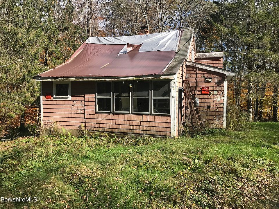 PLEASE DO NOT ENTER PROPERTY WITHOUT PERMISSION. Town maintained and recently widened road. You decide, is it a tear down or a property you want to rehab? just minutes from Jiminy Peak Resort and Donny Brook Golf Course. 2 bedroom 1 bath house with 7.125 acres including a large barn across the road. Located on a town maintained country road. Septic needs repair and needs new well. Partially cleared with wooded area and stream. Electric on site of house and barn lot. Previous fire damage caused by wood stove.