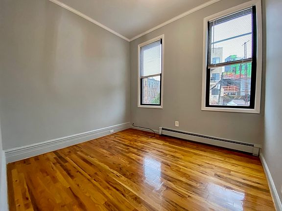 Beautiful new renovation, 1 bedroom railroad layout with intermediate dining room and a huge living room. Plenty of storage space and natural light throughout. Just 1 block to McGolrick park and a 5 min walk to the Graham L train. Heat & Hot water included!