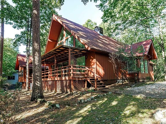 This home has a lot to offer Stunning Cathedral style windows in living room offset by a huge rock wood burning fireplace. Large Master Bedroom on main floor 2 more large bedrooms with bathroom upstairs. Craft/Music you name it room behind garage. All in a wooded setting in Beautiful Hot Springs Village.