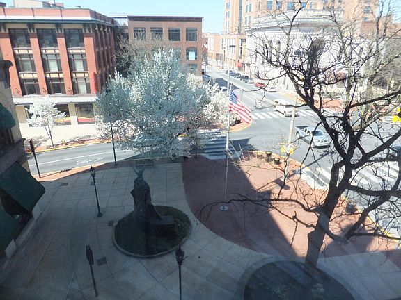 Gorgeous 1 BR/1B condo, over 800 sq ft, with washer/dryer. large living room/dining room with bay windows overlooking the Square in York. Full kitchen with refridge, stove, dishwasher, garbage disposal, washer, dryer. Secured building. Parking in King Street Garage so you never have to walk outside to get to your car or Apt. Walk to Central/Farmer's markets, coffee shops, Strand/Capital, Martin Library, restaurants and brew pubs. Pet deposit required for cats. Owner pays for trash, sewer, water, condo fees. Tenant responsible for electric