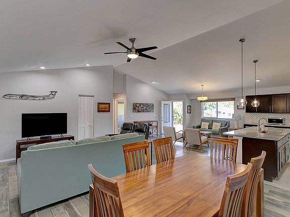 Beautiful and well-taken cared-of home that is located on a dead-end street in the Lower Kaumana Area., Minutes from Hilo Medical Center, Schools, shopping Entries and more. This home offers 3 bedrooms, 2 full baths, and an open floor plan, with the Primary Bedroom located on one end of the home and the two other bedrooms and bathroom on the other end. The Primary Bedroom offers a walk-in closet and double sinks for your convenience. As an added bonus, there is a screened-in Lanai area for your afternoon drink or morning coffee. This is truly a Home Sweet Home Property!!!