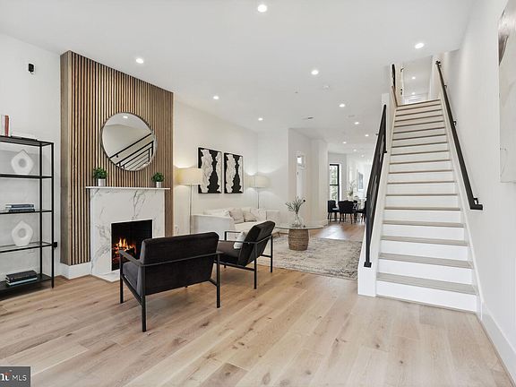 Masterpiece renovation in Bloomingdale. This Commanding Victorian Brownstone is a complete renovation and re-imagining of the existing spaces featuring six bedrooms and five full and one half bath. The entrance is an exquisite example of Victorian Brownstone carvings featuring beautiful and ageless stone relief and fillagree designs. The main living area from the front entrance features an extended living room with six ft picture window, wood burning fireplace, round edged trim and hardwood floors. The extended hallway spaces lead to the massive kitchen and dining areas with a modern single wall kitchen featuring double floor to ceiling cabinets, quartz stone counters and backsplash, stainless double wall oven with microwave, insert gas stove, chimney hood and pasta filler. The dedicated dining area doubles as a second living space and leads to the rear Trex deck and two car parking. The primary bedroom is oversized to accommodate a king-sized bed frame. The front bump out wall features side lite and a massive front window that floods the space with natural light. The primary bath features double sink vanity and a huge walk-in shower with double master closet inside the bathroom space. The two additional bedrooms are serviced by an equally well-appointed hall bath and full-size washer and dryer. The third level features an additional living suite or second primary bedroom. A huge walk-in closet and bathroom suite features a walk-in shower with pedestal soaking tub, double custom vanity, separate enclosed toilet and a view of the Capital from the shower window. The third level also has a private roof deck and additional sink and beverage fridge for useful private exterior space. The lower level is a complete additional dwelling unit featuring a full kitchen, two bedrooms with hall bath and a separate front and rear access and washer dryer hook up. Basement floor is easy to maintain large format ceramic. The rear yard has an oversized deck and parking for two cars finished with a commercial roll up garage door. All systems are new, plumbing supply and waste lines, 200-amp electrical service, double pane windows, and dual HVAC systems for comfort. New custom double thermal pane windows throughout. Material choices include natural stone and porcelain tile, and wide plank oak hardwoods throughout the home. Access to all of DC is minutes away while still providing an oasis of contemporary design and preserved architectural integrity. An amazing place to call home.