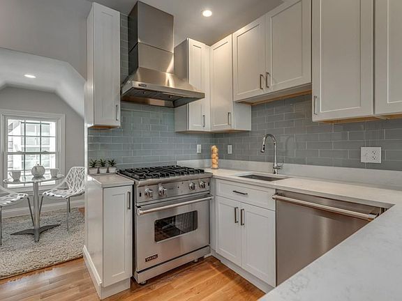 In the leafy Agassiz neighborhood, between Harvard and Porter squares, this recently remodeled top floor 2 bed apartment offers a softly sophisticated modern space with timeless designers' finishes. Nestled under cathedral ceilings, with dormered windows and nooks, this open plan living concept is a perfect urban retreat. Kitchen is fitted with Shaker-style white cabinets, Artic white tops, Viking appliances and a peninsula for dining. Sunsets and sunrises enjoyed at front and back bedrooms. Bathroom has dramatic tall ceilings. Harvard University, Lesley and Sacramento community garden and park around the corner. Laundry in unit. Central air.