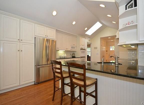 Beautiful spacious home on private cul-de-sac. Open floor plan ideal for entertaining. Sun-drenched kitchen w/cathedral ceiling and dining area w/expansive views. Kitchen opens onto spacious family room w/wood burning fireplace, custom built-ins, surround sound and plasma TV. Formal dining room and formal living room w/fplc. Master bedroom suite w/French doors to large balcony overlooking private yard. Master bath has Carrera marble, separate vanities, Jacuzzi and oversized shower. New wood roof and shingle siding. Level, private yard w/terrace, slate patio, shed, perennial garden and flowering shrubs. Walk to Blue Ribbon Hindley School, beach & YMCA. Close to train & shops.