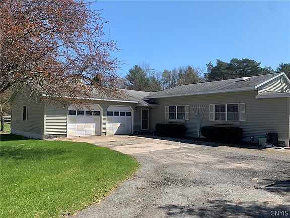 Just minutes away from Oneida lake,You won't want to miss this ranch with 3 bedrooms and 2 full baths. First floor living, two car attached garage with wood stove. Over 4 acres, private setting. So many opportunities with the 50 by 70 pole barn out back featuring an office space, bathroom, washer and dryer hook ups. Currently being used as a full service dog kennel, With Grooming stations and also full bathing station. Several kennels with outdoor access, this pull barn has many uses.
