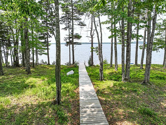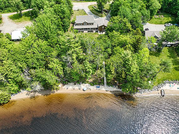 This SPECTACULAR custom home built on a sandy beach area of Gardner Lake was thoughtfully designed and is LOADED with high end features! Every area of this home has been touched with beautiful design and kept up to date by its original owners, no staging needed! Where to start.... as you wander through this large and inviting home there is surprise after surprise with the quality and beauty of its decor and features. The original section of this home was built in 2000 and followed by the Main home build in 2004. Both homes were attached by an enclosed under roof two story breezeway and they function as one seamless home, allowing enough separation for privacy and independent living for your short and potential long term guests. Some key features include two kitchens, four full Baths, two laundry areas, two living rooms, a private beautiful home office perfect for working from home, All interior and exterior trim was hand hewn and custom built. All oak wood and tile flooring. Gorgeous custom kitchen cabinets made in Canada. Beautiful wood clapboard siding and extensive covered porches on back side look at the lake and gorgeous Sunsets and there is also a welcoming covered front porch. This home is perfect to spread out without ever being crowded. It could be separated if you wanted to rent one and live in the other, or rent both as vacation rental property. Radiant heat in floors and baseboard heat upstairs and three gas burning fireplaces make this home toasty during the fall and winter months for year round use. A Once called Pearl Beach this location is much desired with a great sand beach to relax on all summer and enjoy all the seasons on the lake. Ice fishing in winter! The boardwalk and stairs lead you to your beach and area to launch your kayak or boat. 15 minutes from the Down East Sunrise Trail System! Dining, shopping nearby. Seller to include 7/8 acre cutout for Buffer from parcel across street. Total acreage with house will be 2+/- acres.