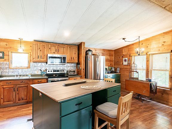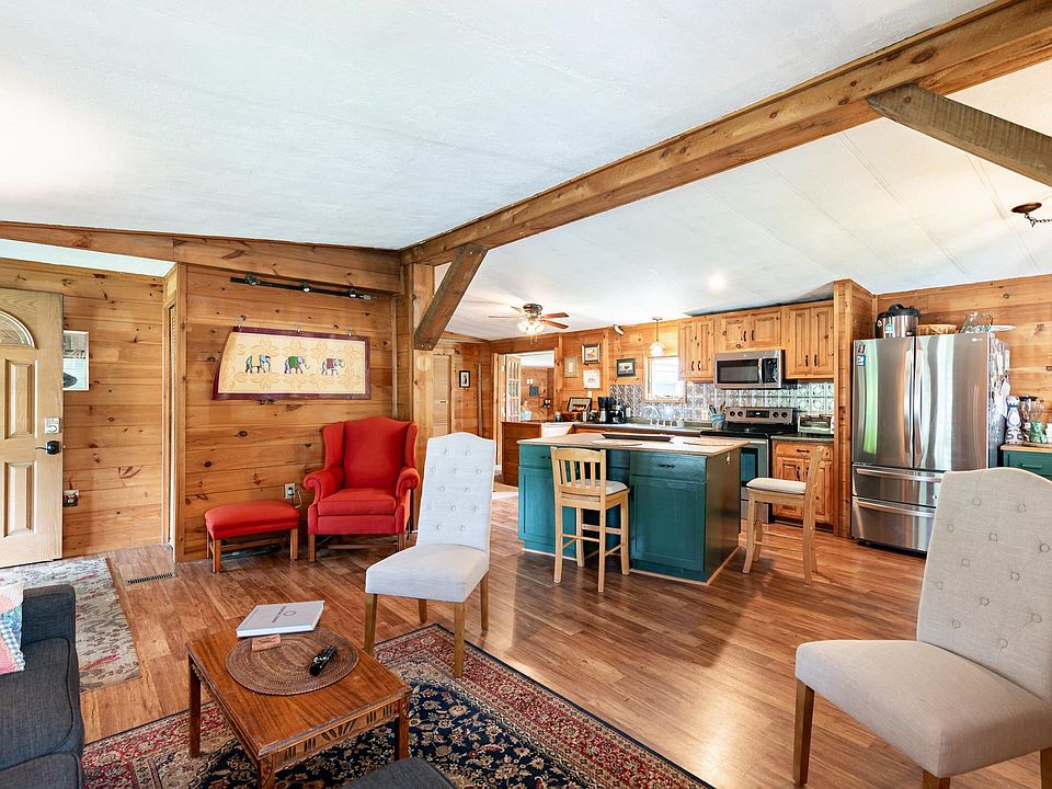 BACK ON THE MARKET! Welcome home! This beautifully maintained property is ideally located just off Route One in North Hampton. The open-concept living room, kitchen, and dining area offer plenty of space and feature a charming rustic wood interior. The spacious kitchen, complete with an island, is perfect for cooking and entertaining. A 9x14 Sun Room/Family room adds even more living space to this inviting home. The primary bedroom boasts an ensuite full bath and double closets, while two additional bedrooms and another full bath provide plenty of room for everyone. Outdoor enthusiasts will appreciate the covered front porch and sunny back deck. Additional storage is available in the shed. Please note that no dogs are allowed in this park (cats ok), and park approval is required for entry.