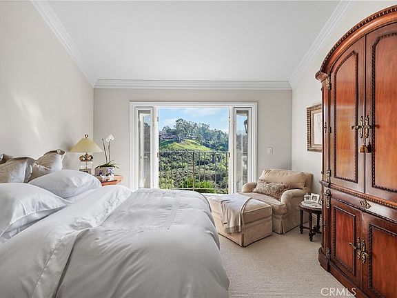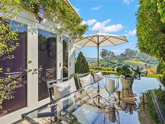 Stunning Views! Entertainers Dream! Rarely on the market, unobstructed panoramic views of Canyon, Valley, Shady Canyon, and Strawberry Farm Golf Course. Located in the Gated Community of Turtle Rock Pointe, this 3 bedroom, 2.5 bathroom home with its open floor plan is a unique opportunity for the most selective buyer. As you enter through the lovely garden patio entryway with Madagascar Jasmine Vines you are transported into an entirely serene escape. Through the front door, you are immediately mesmerized by the panoramic view, luxurious living room with fireplace and custom mantle with Carerra marble, hardwood floors, French Doors and cathedral ceilings with recessed lighting and crown molding. With the wall and doorway removed, the formal dining room is now open to the gourmet kitchen and cozy family room. The Chef's Delight kitchen has stainless steel appliances, pots and pan rack, and custom granite countertops with room for barstools. The comfortable family room adjacent to the kitchen is a perfect relaxing spot as you overlook your garden entryway. The remodeled guest bathroom reflects every detail of luxury with a French vanity, custom hardware, sconces, and lovely mirror. Upstairs you will find a spacious primary suite with French doors and a balcony that overlooks the entire view. The primary bathroom has a walk-in shower, dual vanities, a walk-in closet, and a secondary sliding closet with new closet doors. The additional two large bedrooms have plantation shutters and new closet doors. The backyard is a true star of the home with its wrap-around patio, lovely gardens, and water feature that overlook panoramic views. The owner paid every attention to detail by adding custom windows and French doors to take advantage of the view from every space possible. The HOA includes two separate pools and spas, exterior landscape maintenance, exterior paint, roofs and two gated entries to the tract. The location is superb with easy access to renowned attractions such as UCI, Strawberry Farm Golf Club, John Wayne Airport, and major freeways. Award winning schools including Bonita Canyon Elementary, Rancho San Joaquin Middle, and world renowned University High School are all located in the prestigious Turtle Rock Community. Low taxes and No Mello Roos make this home extremely desirable. Act quickly to make this one-of-a-kind home with a panoramic view your own!