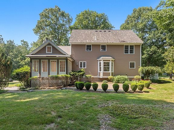 A TIMELESS SANCTUARY AWAITS - Stately 4BR/2.5BA Colonial on a picturesque ~1 acre corner lot in a desirable neighborhood. Inviting curb appeal with professional landscaping & private backyard. Enter to gleaming hardwood floors starting in the foyer and carrying into the living room & dining room. Then enter into the heart of the home, a cozy eat-in kitchen with ample granite counter space, numerous cabinets & recessed lights along with granite topped built in desk area. Move from the kitchen with your favorite game time foods and relax in your sunny fireplaced family room w/ coffered ceiling, wood burning fireplace and companion 3 season sunroom. Enjoy starting your day with a morning coffee and paper in your tranquil sunroom w/ beadboard ceiling & mahogany flooring. Upstairs boast 4 bedrooms with a lovely owners suite with 3/4 bath & walk in closet. The upstairs also offers 3 more sizable bedrooms and a full bath with jacuzzi tub. Don't miss this dream home. Floor plan in documents.