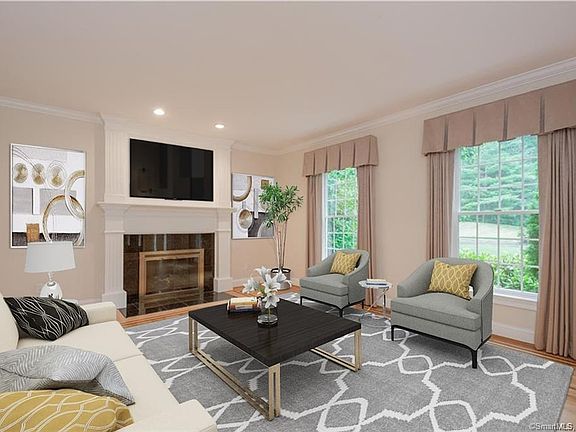 This stunning home is centrally located in the heart of Simsbury in one of the most desirable neighborhoods.The lot is very private and quiet,abutting conservation land.The inviting two story entry welcomes all into the home,detailed millwork, arched doorways, and rich hardwoods,just states high quality.The 1st floor offers hardwoods throughout,an incredible spacious granite kitchen with a 10ft island and Viking appliances,family room with coffered ceilings,cozy fireplace and a wet bar.Also on the 1st floor a private study with built in bookcases,a bright sun-filled living room with fireplace and a formal dining room perfect for entertaining.In addition the 1st floor offers a back staircase, mudroom,two half baths, and a laundry room.The luxurious master bedroom suite offers hdwd floors walk-in his and her closets, spa like master bath,with shower and tub and a sitting room/office with fireplace.In addition the 2nd floor offers 4 additional bedrooms with hdwd floors and two full baths.The walkout lower level provides 1,900 additional finished living space with a full bath and exercise room, plenty of room for a home theater and playroom.Being centrally located just minutes from all schools and Simsbury Farms Recreation Complex.Bradley airport is just minutes away and Boston and NYC are just a couple of hours away.Simsbury was recently ranked by Money Magazine as one of the "Best Places to Live" and Simsbury High School was ranked #6 in the state by US News and World Reports.?