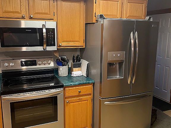 Ranch style home 32x40 with finished basement walk out deck area with 30x40 detached garage. New rugs and appliances Garage has new wood furnace with propane back up, work bench area and bath room as well.