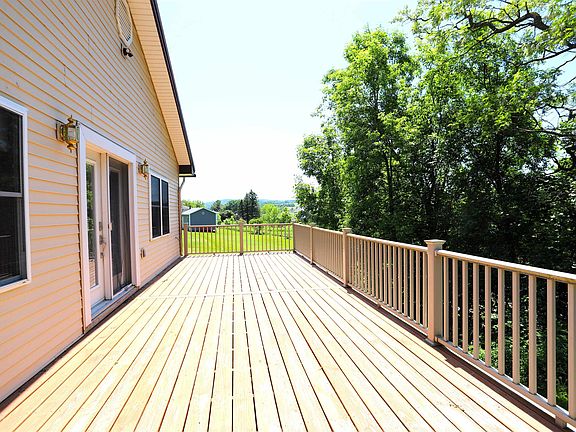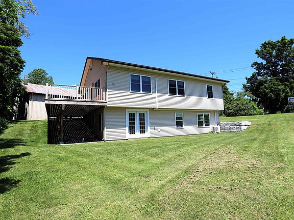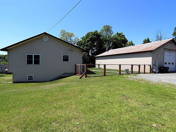 Spacious home built in 2000 with an over-sized 40’x60’ detached & heated garage/workshop and all situated on a .44 acre corner lot. This home is much larger than it appears, as there is a full walkout lower level on the back side. The main level features an open floor plan with an eat-in kitchen, dining areas, living room, a primary bedroom with double closets and a ¾ bathroom with laundry. The lower level offers a bright family room, 2 bedrooms, ¾ bath and a utility room. Additionally there is a 12’x30’ deck, 200 amp electric and a full enclose pet fence. This is a very efficient home to own with an oil boiler that provides radiant heated floors in the lower level & baseboard hot water heat on the main level and a mini-split for AC/secondary heat. The massive garage/workshop is heated with three options (pellet stove, wood stove and/or propane), has a ½ bath, 100 amp electric panel, 16’W x 14’H garage door, storage above and so much more. Ideal for a commercial business, workshop, garage for toys, etc. All serviced by public water/sewer, Xfinity high-speed cable & internet available and wired for a portable generator. Direct access VAST snowmobile trail onsite and VASA ATV trail. This property package has a lot to offer for the price.