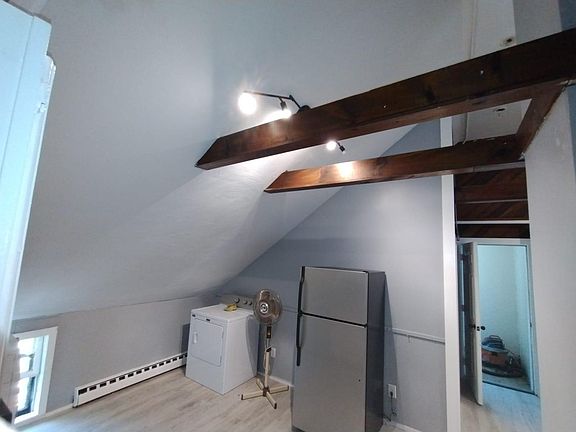 The Home: The Penthouse at 18 Scott is renovated. The unit features a large bedroom, a small bedroom / office, one bathroom, a large kitchen and a nicely sized living / dining room. Certain parts of the unit feature vaulted ceilings and exposed beams, adding unique character. The kitchen features stainless steel appliances, a good amount of counter space, a dishwasher and a microwave. In unit laundry is also located in the kitchen. The bathroom includes a standing shower, sink, toilet, and storage shelf. There is plenty of light throughout. Residents will also have the opportunity to benefit from an off-street parking space and a wonderful, expansive backyard space where bunnies and birds like to visit. 18 Scott is nestled down the road from a school in a quiet residential neighborhood with a high quality school district. Plenty of parks, including The Monastery are nearby. Get peace and quiet, only fifteen minutes from Providence. Easy access to the 295 for going to Boston as well. No smoking whatsoever. Landlord pays for water and sewage. Resident pays all else. Payment through online portal. Responsive landlord.