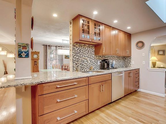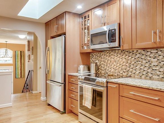 More than meets this eye in this stunning, renovated home! The exterior presents as a more traditional split-entry style home, but the moment you walk inside you'll realize it is so much more! A massive addition and renovation have transformed this home into a showplace. The 2013 kitchen features maple cabinets, granite counters, stainless appliances, and an eye-catching tile backsplash. The kitchen is beautifully open to the breakfast room and the expansive family room addition beyond. This space is striking, with soaring ceilings, skylights, and a triple custom window at the rear that frames this room and the private backyard. This space also flows smoothly into the dining room and living room beyond, all with beautiful hardwood floors and ample natural light. The full bath on this level has been renovated recently as well. 3 bedrooms, including one of 2 masters (w 1/2 bath) round out this level. The LL has a private master suite, office & more. GREAT neighborhood & central location!