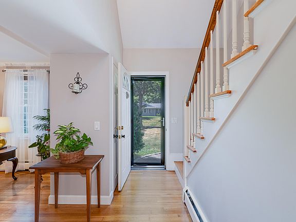 This Cape is both Charming and Pristine! Entrance through the farmers porch brings you into the dining area that has access to the attached garage as well as slider leading to the backyard patio. The adjacent kitchen is just the right size and features granite and stainless. The bright and spacious living room includes a wood burning fireplace for ambience and warmth. Looking for a first floor bedroom, full bath and first floor laundry? Got it! Upstairs are two generous bedrooms connected with a Jack and Jill bathroom. Delightful! Plenty of closet storage too. High Efficiency Lockinvar Boiler provides Gas heat, town water, hardwood and tile floors. And the roof is only 5 years old.The full basement is tall and open and ready for your future plans. The fenced in yard showcases an appreciation and talent for landscaping and truly feels like an oasis. Prefer a composite deck? We have that too! Also room to park your boat or RV on paved area next to garage. Plus enjoy access to your private association beach on Lawrence Pond, with clubhouse, tennis courts and childrens play area.