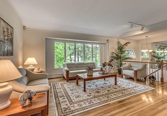 Pride of ownership shows in this 50' EXPANDED SPLIT in a desirable Hood School/Hillview CC neighborhood! Set back from the street on a private 1+ acre corner lot, this 3-4 bedroom home has been lovingly maintained by its owners for the past 47 years. Recent updates include NEW gleaming hardwood floors, NEW paint throughout interior, NEW doors, NEW garage doors, NEW carpets, NEW roof, NEWER heating system, and more! The first floor features an open floor plan kitchen and sunroom addition with abundant natural light overlooking a private backyard as well as a combined LR/DR and three spacious bedrooms & main bath down the hall. The lower level family room has a working fireplace, bonus 4th bedroom, home office or exercise room as well as laundry room & half bath and access to the two car garage. New septic system to be installed. This home SPARKLES and CANNOT BE MISSED!