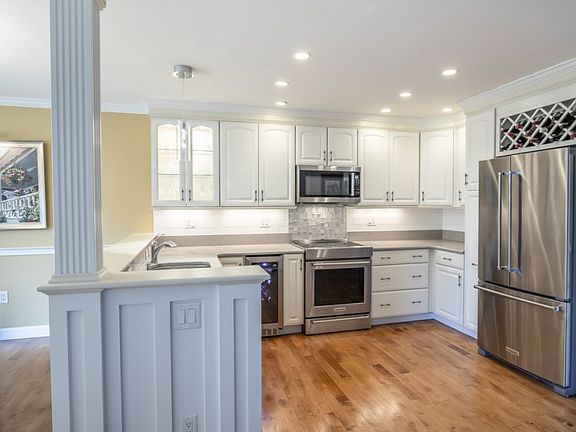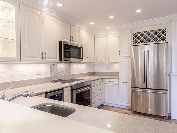 Spectacular and private 3 bedroom 2.5 bath townhouse on the 6th tee of Springfield Country Club. Breathtaking updated kitchen features quartz countertops, plentiful cabinetry, and all new stainless steel appliances, including a wine fridge! Eat in kitchen, with lit bookcases and beautiful bay window. Large Living Room with new gas fireplace and wall of sliding windows exits to a new 14'x22' composite deck with custom in post lighting. Additional seating area can be your formal dining room, and boasts french doors to the newly screened and tiled porch. Amazing master ensuite with marble bath features a walk in shower and separate bathtub. Dressing area boasts a double vanity with granite and an entire wall of closets, including a walk-in. Sliders lead to a private deck. 2nd bedroom is oversized with a stunning guest bath with granite topped cabinetry. Lower level boasts large 3rd bedroom, laundry and a rare amount of storage.