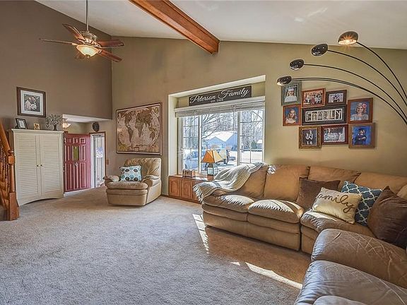 A NATURAL INSIDE & OUT! Exceptional Well Maintained Home offers a Desirable Open Floor Plan picturesquely situated on almost a 1/2 acre wooded lot! Breathtaking Vaulted Ceilings welcome you into the Great Room that boasts a new picture window with built-in storage bench! Kitchen Island serves double duty as a work space & dining area! Step Down Family Room has Hardwood Floors & Slider to a Deck overlooking a Deep (186 ft) Wooded yard! Updates to Exterior Lighting & All Anderson Windows, New Garage Door & Opener, Brick Walkway, Remodeled Main Bath, Updated Ceiling Fans, Lights & Appliances, Hot Water Heater, Gas Furnace, Deck, 2 Sheds, Firepit & Huge Playset to Enjoy!
