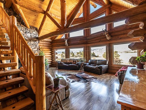 18 Sheep Mountain Rd is a rare opportunity to have an awesome one of a kind, hand hewn log home on 36+/- acres! Live out your dream in real life on this piece of the last frontier in the foothills of Laramie Peak and the Laramie Mountain Range, just outside of Wheatland, Wyoming! This custom home features 3 bedrooms, 3 baths and an oversized 2 car finished and attached garage. The spacious eat in kitchen and dining areas feature a separate island bar, knotty alder cabinets, solid surface tops and stainless appliances. In floor radiant heat will effortlessly keep things cozy and comfortable in the winter months along with the majestic natural stone fireplaces. The views of Sheep Mountain and the surrounding landscape are endless from the great room, large loft and entertaining areas that have soaring vaulted ceilings, walls of windows, and an integrated full home entertainment system! Everyone will enjoy those never ending summer evenings on the large wrap around deck that leads to the fire pit and BBQ patio for gathering and outdoor dining! The greenhouse has electricity, water and a sprinkling system which make for a convenient and efficient place to cultivate your garden! The heated barn has a workshop, hay storage, tack room, full finished guest room with bath and another outdoor bar and patio entertaining area complete with satellite TV. There are separate fenced pastures for your horses that move into timbered acres bordering an additional 920 acres of State and BLM land for easy walk in and hunting access! Elk, deer, antelope and a host of other Wyoming critters can be found in the neighborhood along with the National Forest just minutes down the road. All of this and more just a short drive to the town of Wheatland for schools, services and supplies! About an hour to Glendo and Guernsey State Parks for fishing, boating and water recreation. Just over an hour south to Cheyenne and the Wyoming State Capitol, or State HWY 34 into Laramie and the University of Wyoming, and an easy drive back to the Colorado front range and Denver International Airport! Qualified showings by appointment only.