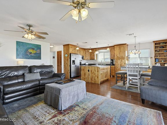 Wonderful waterfront home in sought after Garden Isles! This furnished home features 3 bedrooms and 2 baths, hardwood floors, custom cabinets and sliding glass doors leading out to the large deck overlooking the water! So much room downstairs for family gatherings, crawfish boils and bar-b-ques. Hop in your boat and enjoy fishing, water sports and fun days in the Bay. Just minutes to the open water, harbor and downtown Bay St Louis! 50 amp RV plug under the house!! This home has been used as a family vacation home and a short tern rental.