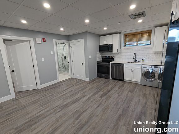 Newly renovated 1 bed 1 bath steps from Brighton Center and across from St. Elizabeth's Hospital. New high-end wrap around kitchen, new bathroom with a large tiled walk in shower, new flooring, new lighting, new doors, new ceiling, new drywall and new paint. Central A/C, washer/dryer in-unit, all new kitchen appliances and a double bedroom closet. Part of a commercial building, but this unit has its own private entrance; Located off a residential street. No pets., 1st floor unit. Steps from Saint Elizabeth Medical, Brighton Center, 0.7 Mile from Comm ave South Street stop. 0.8 Mile from Boston Landing. 1 parking spot available - Extra Secured Storage available in the main building. Large 10x6 Space For $200 a month or Small 6x6 space for $100 a month.