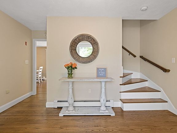 Stunning Colonial tastefully remodeled & beautifully decorated with “Magnolia Lifestyle” colors and farmhouse style. Set on picturesque and meticulously manicured lot at the end of a cul-de-sac. Welcoming front portico has granite & stone steps. Spacious kitchen w/ white cabinets, coffee station, stainless steel appliances, quartz counter tops, tiled backsplash and eating area with slider to expansive composite deck overlooking sparkling in-ground gunite pool; opens to step-down family room featuring attractive fireplace w/ marble surround and white wooden mantel, vaulted ceiling & access to 2C garage. Entertain in elegant dining room with bay window, crown molding & wainscotting. Hardwoods throughout 1st floor. Main bedroom is a private retreat with hardwoods, walkin closet & bath w/ tiled shower. 3 bedrooms are bright & airy with ample closet space & updated bath. Walk-up attic. All new windows, roof, heating system, hot water tank, fence & gate, deck, fireplace & more. Just move in