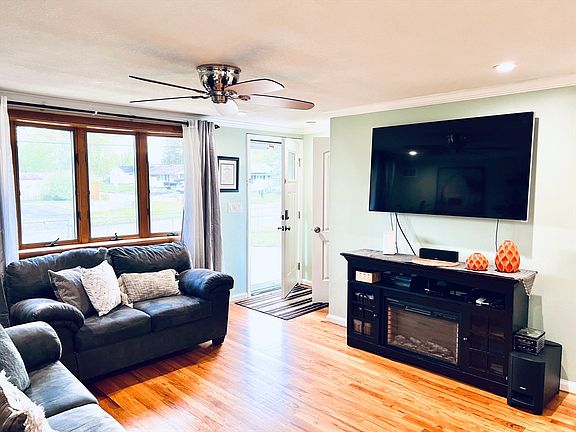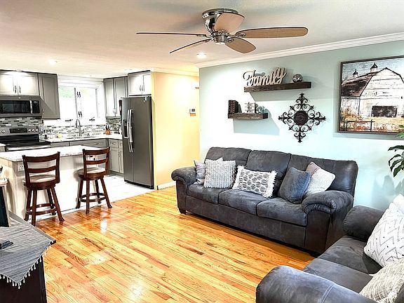 Back on the Market, Buyer's loss is your gain. Ranch w/Oversized corner lot with double driveway, 2 carports and shed. Steps away from WNEU. Featuring open concept living room and kitchen. Livingroom TV w/3D glasses included. Hallway and bedrooms with hardwood flooring. Recessed lighting w/dimmers and ceiling fans throughout the home. Remodeled eat in kitchen w/island-features built in electrical outlets, quartz counter tops, under counter color changing lighting. Updated bathroom w/surround tub/shower combo. All 3 bedrooms w/double closets, hallway w/double linen closet. Enclosed 3 season porch w/ceiling fans off kitchen for easy access to exterior/carport & basement. Basement not included in living space is offering under stair storage. Walk in pantry w/built in shelving. 2nd full bath w/shower stall, Bonus space great use for additional family room w/closet, and separate room for possible office space. Mechanics room w/washer, dryer hook ups, laundry sink, 2nd refrigerator included.