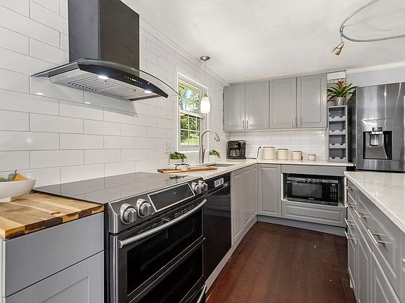 - Features: Flooring - Hardwood, Pantry, Countertops - Stone/Granite/Solid, Kitchen Island, Cabinets - Upgraded, Exterior Access, Open Floorplan, Stainless Steel Appliances, Lighting - Pendant