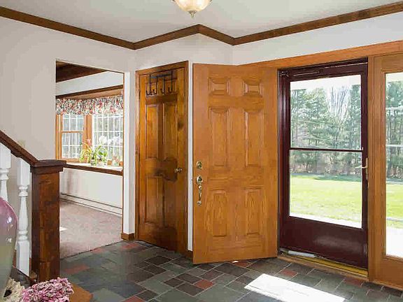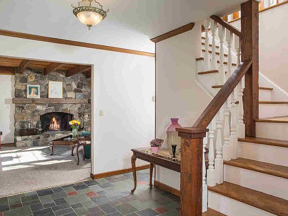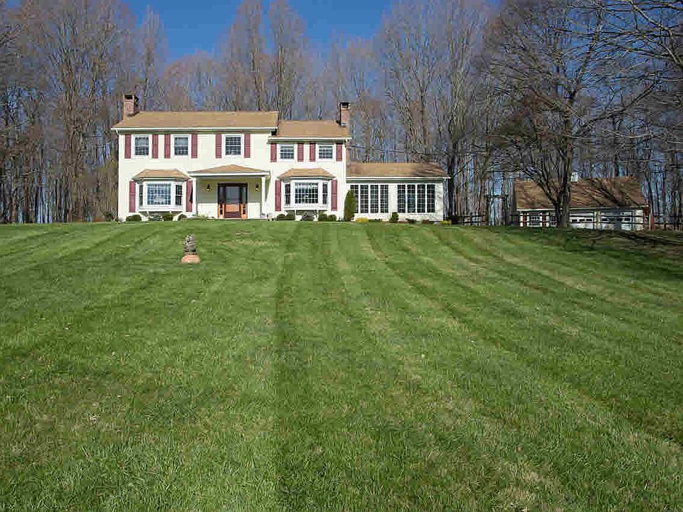 This charming farmhouse offers four bedrooms, two and a half baths, beautiful hardwood flooring,eat in kitchen,butlers pantry,mudroom,living room with stone fireplace,and a glorious sunroom. In addition to all these wonderful features there is also s detached 3 car garage with upstairs storage area. Amish built barn with three stalls,feed room,heated tack room,water,electric,and large hayloft upstairs. Additional small barn and well designed paddocks. A serene setting with Mt.views!