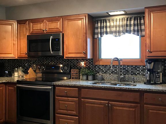 Fall in love with the well maintained home. First floor offering updated kitchen with breakfast bar and dining area, 1st floor laundry, double living room with gleaming hard wood floors. 2nd floor offers full bath with tub/shower combination, large room top of stairs opens to 3 good size bedrooms and a walk in closet. Replacements windows, vinyl siding. Basement partial cement and dirt floor. Currently used for storage. Beautiful refinished hardwood floors and freshly painted interior. Enjoy sitting on the open front porch or enjoy the patio and built in fire pit in good size yard. Off street parking with stone filled driveway installed by local contractor. Located on dead end street. Walking distance to schools, markets, local businesses and restaurants.