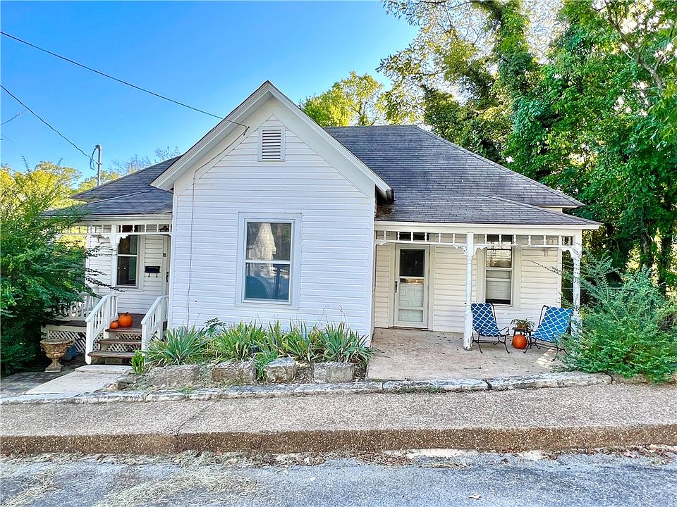 This beautiful Historic home was built CIRCA 1880 during the peak of Eureka's popularity. It is a testament to the skilled craftsmen that lived here so long ago. There are still 72 homes that were built in Eureka Springs in the 1880's that remain as landmarks and continue to play an integral part in our ever evolving history. Eureka was ravaged by fires in our early days, they wiped out so many Landmark structures from that era. This charming home remains strong, She is eagerly awaiting her new stewards to revive her glory. This home could easily be brought up to date while remaining true to her historic charm. The Red Pine floors are simply stunning and in amazingly great shape! The Kitchen and both bathrooms are ready for a remodel. The bones of this Historic home are worthy of someone's love and attention. The location couldn't be any better. This home is perched just off the Historic loop by the grand Crescent Hotel and only steps from downtown. Large lot with wooded view and TWO off street parking spots!