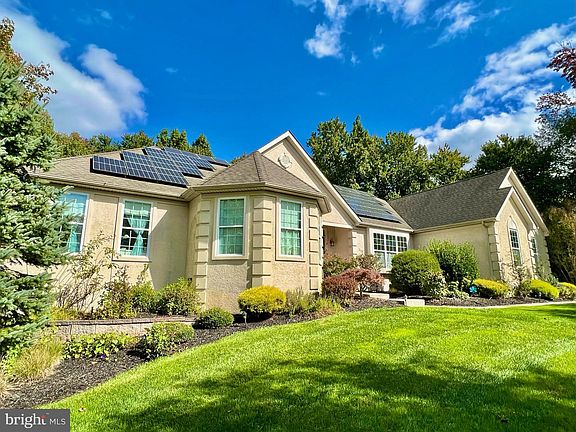 "SOLAR PANELS PAID AND INCLUDED IN PRICE" THIS IMMACULATE RANCH HOME is situated on a 3/4 acre wooded lot, in a very private and quiet location! The home is fully handicapped accessible, with lots of open space, wide openings, accessible shower, and a ramp. Total living space is 3333 square feet, 4 bedrooms, 3.5 bathrooms. Living space main level: 2937 square feet; Finished space lower level: 396 square feet (one bedroom plus one full bathroom). Some amazing features: -granite counter tops in the kitchen -breakfast nook/sunroom -fireplace in the living room -extremely high ceilings with skylights -sunny office with large windows -Jack and Jill bathroom with individual sinks -full basement (partially finished) with high ceilings -home movie theater -three-car attached garage with 8' door openings and a ramp -lots of storage -beautiful landscaping with low-voltage LED lighting! -three-tier paver patio that is great for entertaining! 15.4KW SOLAR PANELS WERE INSTALLED IN 2021 AT A COST OF $50,750 AND COVER 100% OF THE ELECTRIC BILL PLUS GENERATE AROUND $1500 A YEAR IN SRECS!!! -sprinkler system -shed -Jacuzzi tub in master bath -Close to Philadelphia, one hour away from Atlantic City, Ocean City, and the beach. No traffic! Many upgrades: -accessible shower -custom front door -cherry hardwood flooring in the LR/DR/foyer -ceramic tile flooring in the kitchen/nook/sunroom and LD/DR/foyer -marble flooring in powder room -crown molding in the LR/DR -many LED lighting upgrades -timed lighting outlets -rev-a-shelf (slide-out) kitchen shelves and drawers -new large powerful microwave oven. Move-in ready! MUST SEE TO APPRECIATE THE BEAUTY OF THIS HOME!